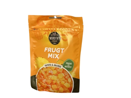 Ingredienser: 31% papaya, 26% ananas, sukker, surhedsregulerende middel (E330), konserveringsmiddel (E223 (indeholder SULFITTER)). Kan indeholde spor af jordnødder og alle nødder.